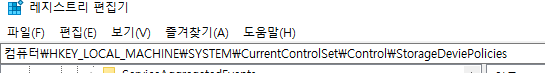 HKEY_LOCAL_MACHINE\SYSTEM\CorrentControlSet\Control์์ StorageDevicePolicies ๋ง๋ค๊ณ