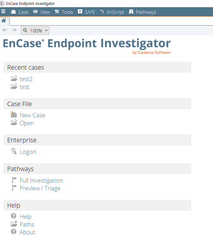 ๋จผ์ EnCase 8์ ์คํ์์ผ ์์ํด๋ณด์