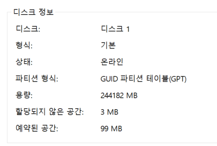- Disk GUID(16 byte) : Unix์ UUID(universally unique identifier)์ ๋์ผ ์ฆ, ์๋ณํ๊ธฐ ์ํ ๊ฐ