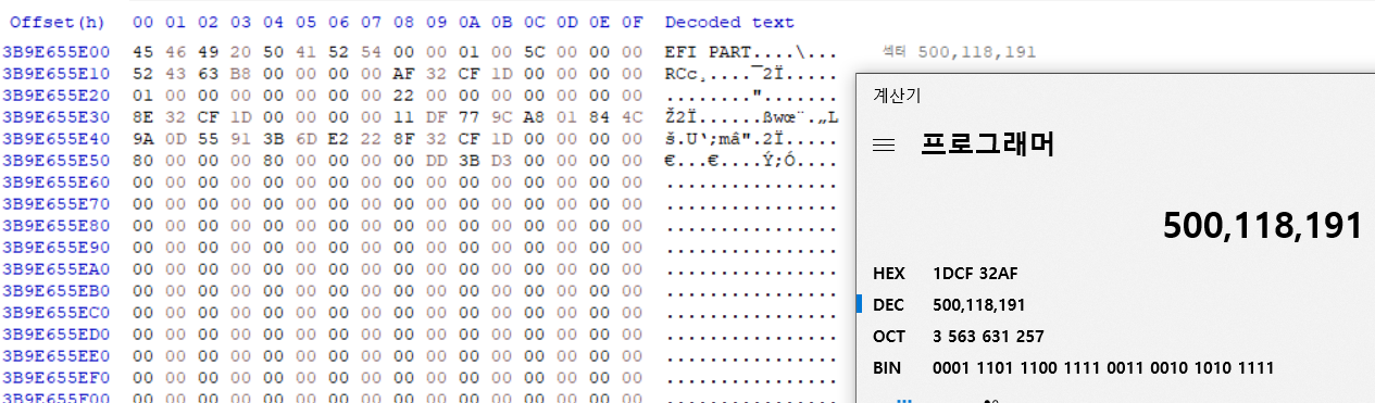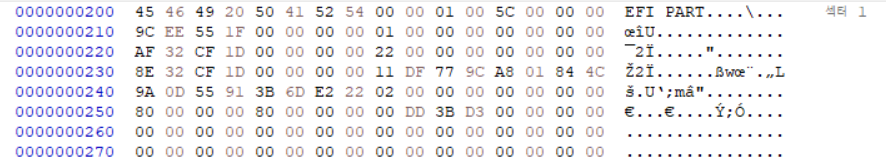 - GPT Signiture(8 byte) : EFI PART ๊ธฐ๋ก