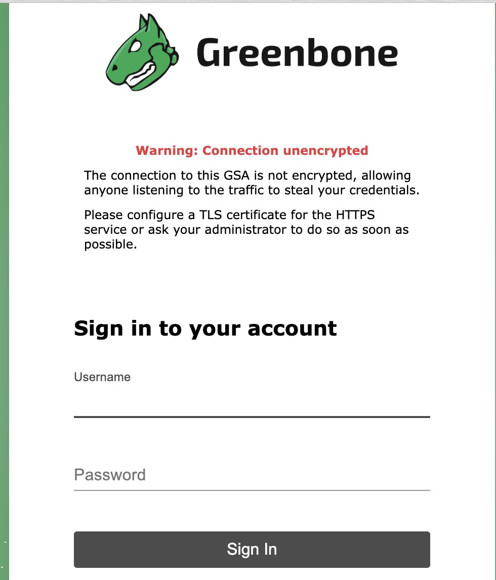 // GVM ๊ณ์ ์ admin/admin์ผ๋ก ์ค์
