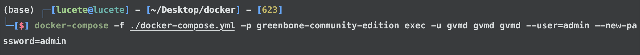 docker-compose -f ./docker-compose.yml -p greenbone-community-edition exec -u gvmd gvmd gvmd --user=admin --new-password=admin