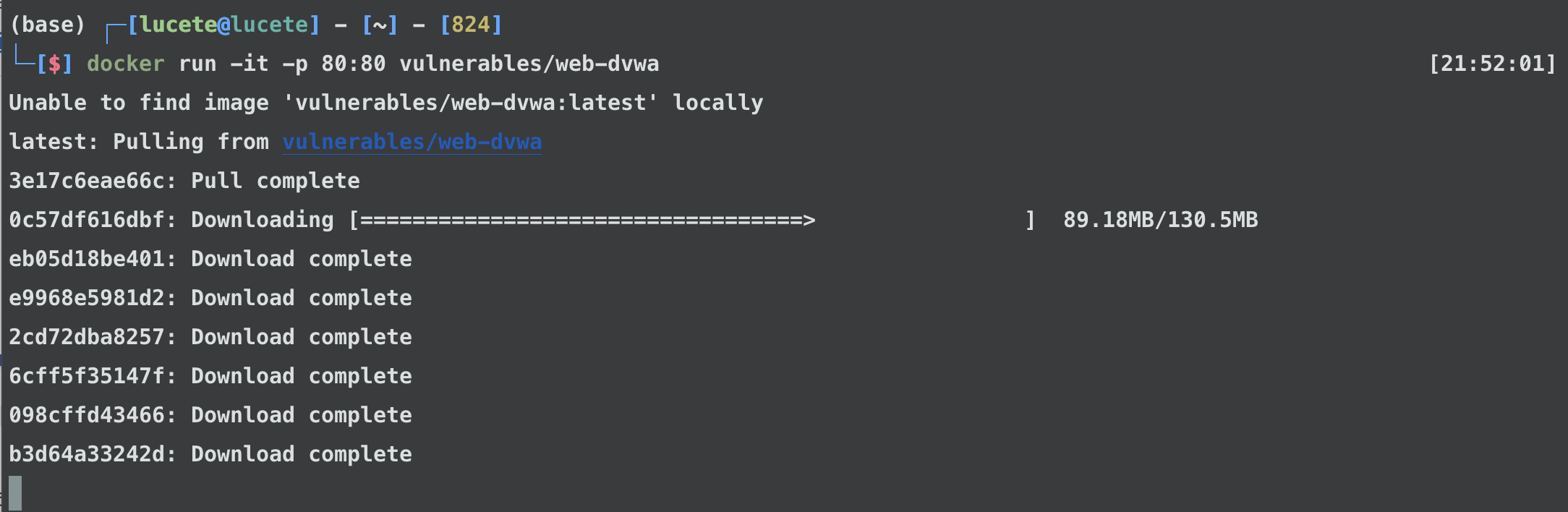 docker run -it -p 80:80 vulnerables/web-dvwa